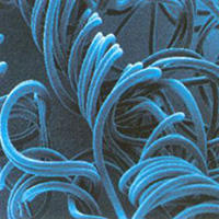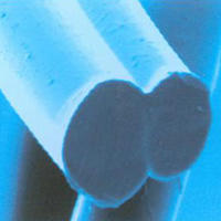 LYCRA?T400?纖維的高分辨率照片表明,每根單絲肉的兩種聚合物產生一種種狗骨狀的橫截面。